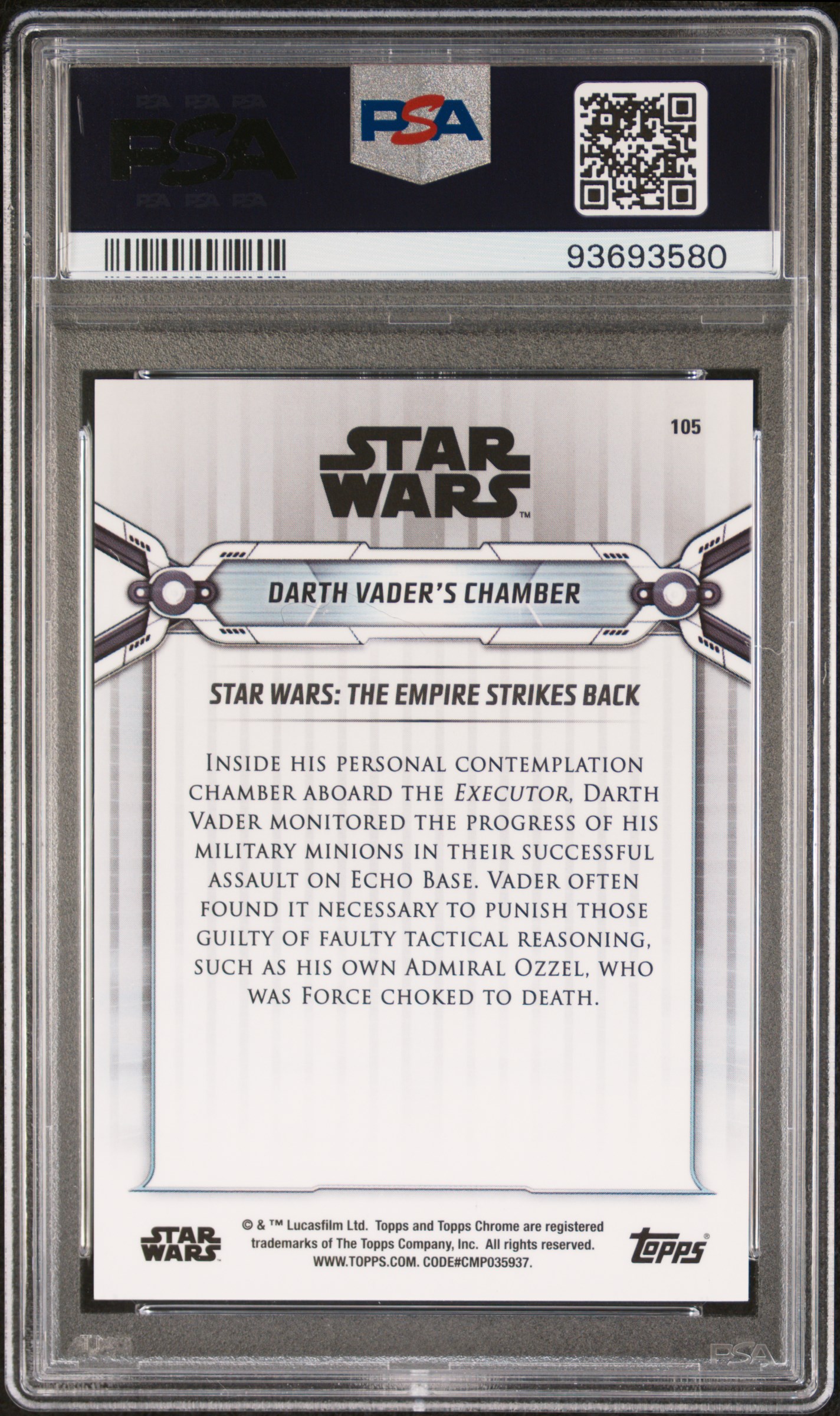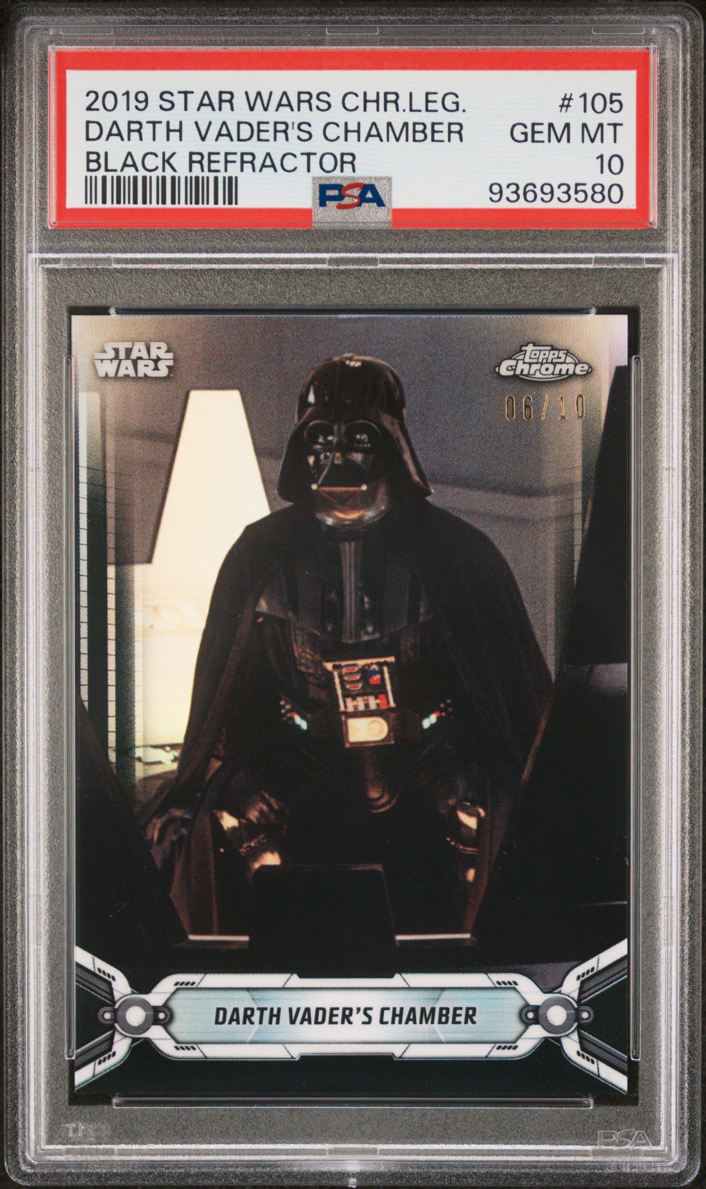 2019 Topps Star Wars Chrome Legacy 105 Darth Vader’s Chamber Black Refractor /10 PSA 10