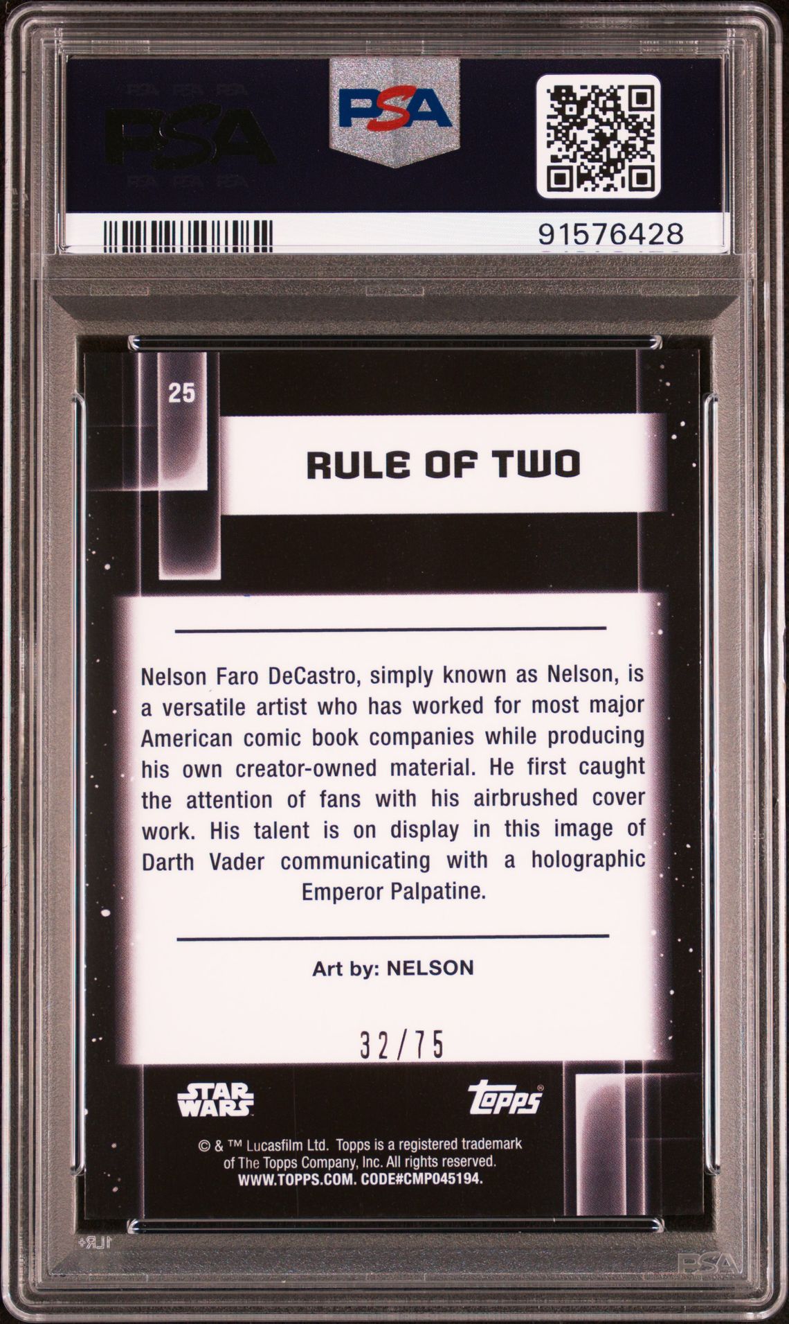 2021 Topps Chrome Star Wars Galaxy 25 Rule of Two Prism Refractor /75 PSA 10 Darth Vader, Emperor Palpatine