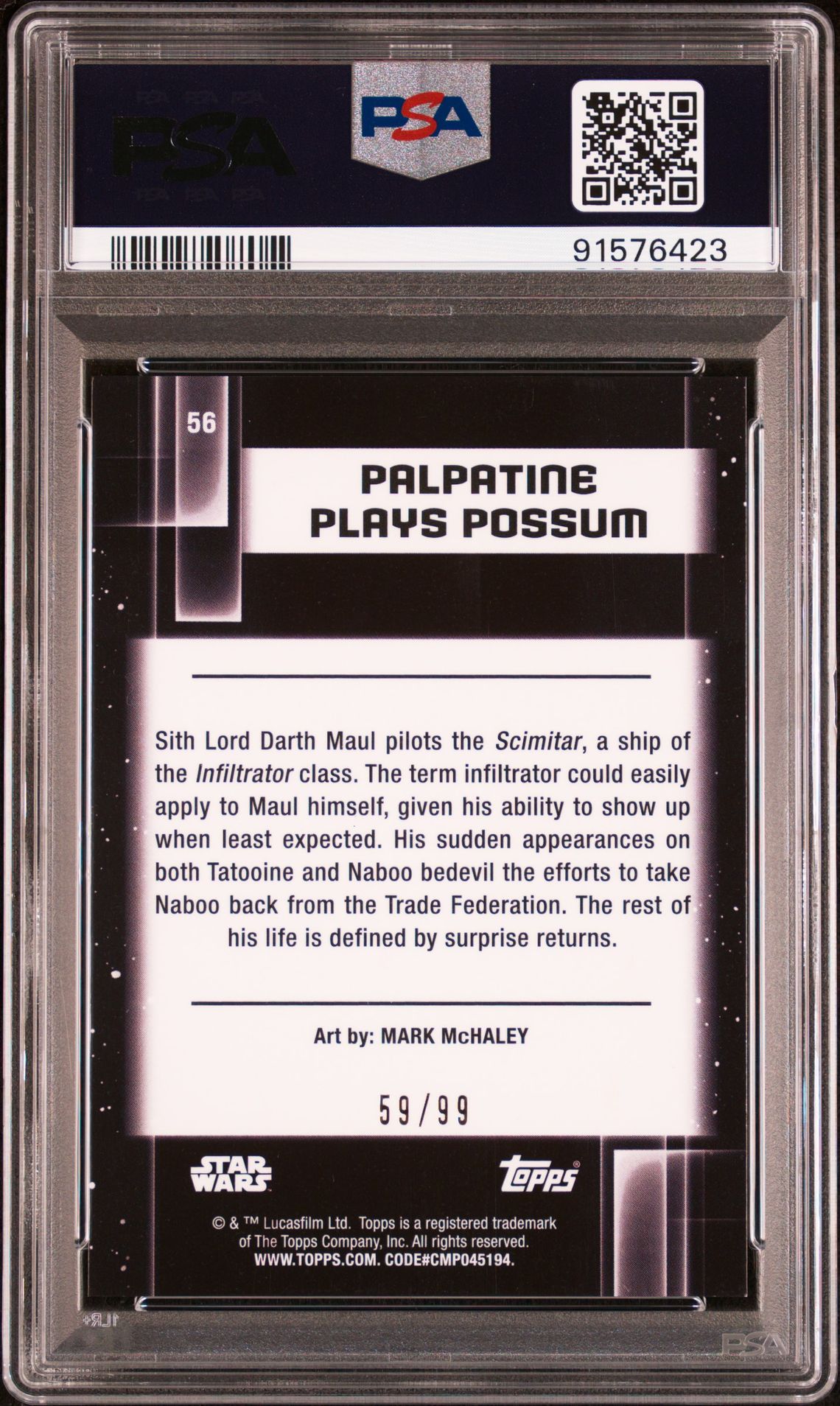2021 Topps Chrome Star Wars Galaxy 56 Palpatine Plays Possum Wave Refractor /99 PSA 10