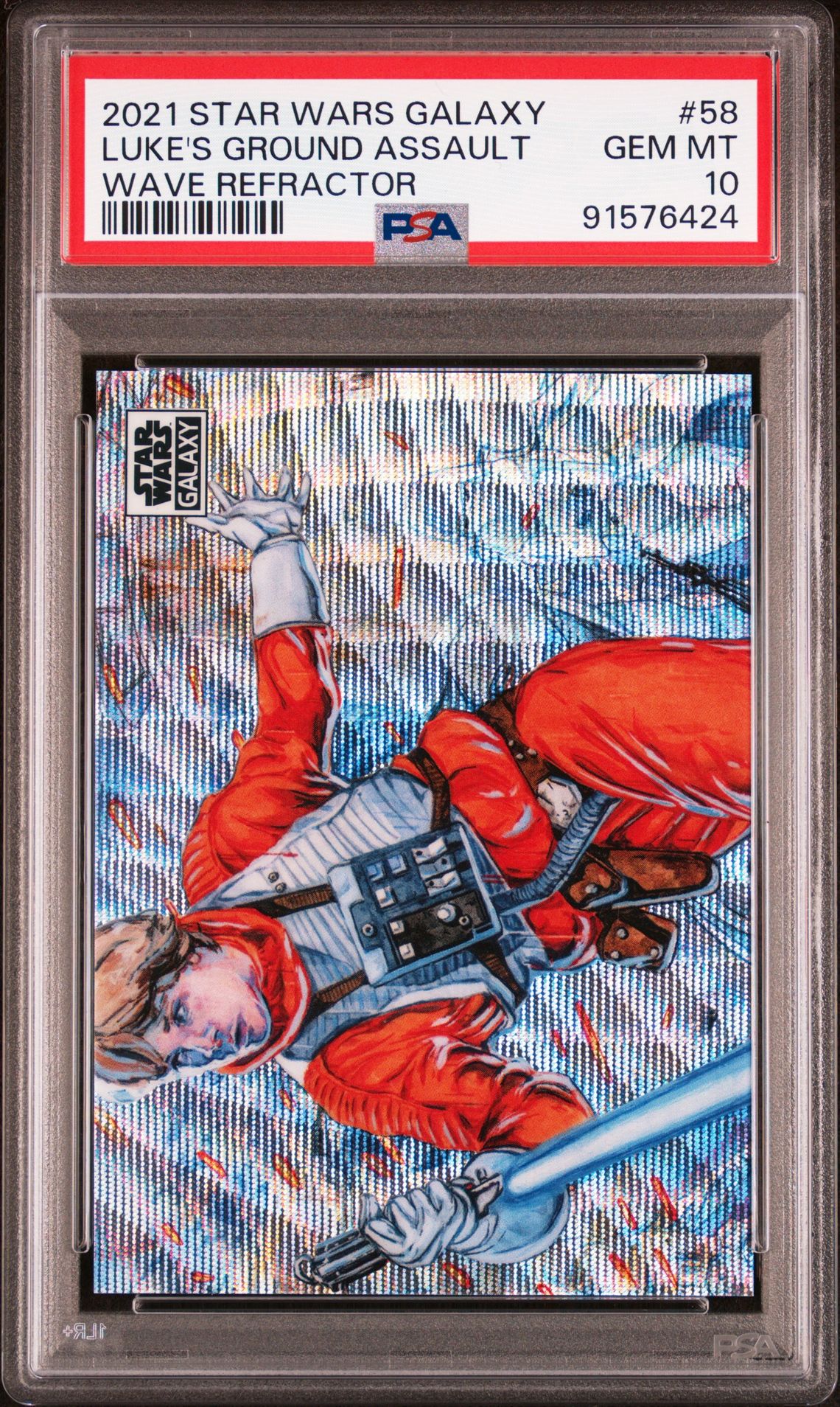 2021 Topps Chrome Star Wars Galaxy 58 Luke’s Ground Assault Wave Refractor /99 PSA 10 Luke Skywalker