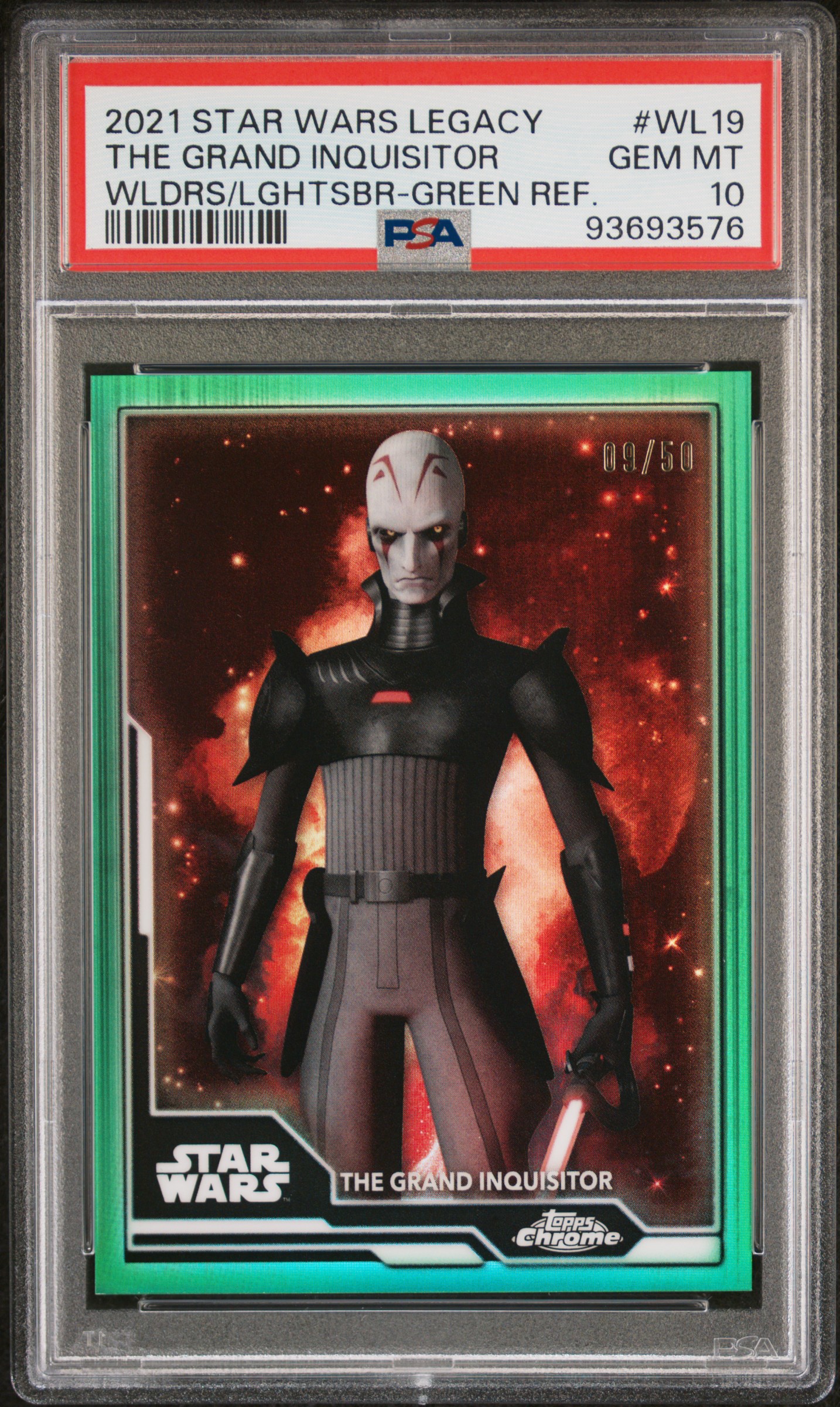 2021 Topps Chrome Star Wars Legacy Wielders of the Lightsaber WL19 Grand Inquisitor Green Refractor /50 PSA 10