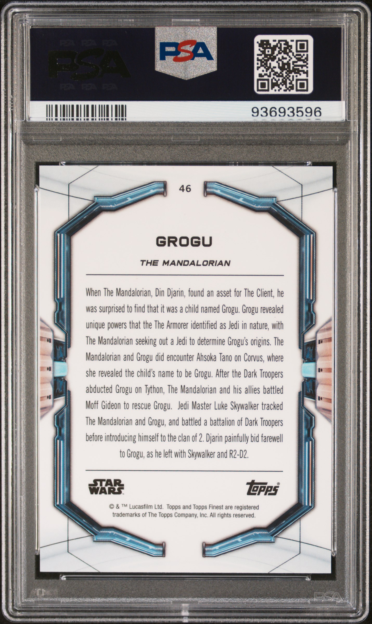 2022 Topps Finest Star Wars 46 Grogu Blue Refractor /150 PSA 10