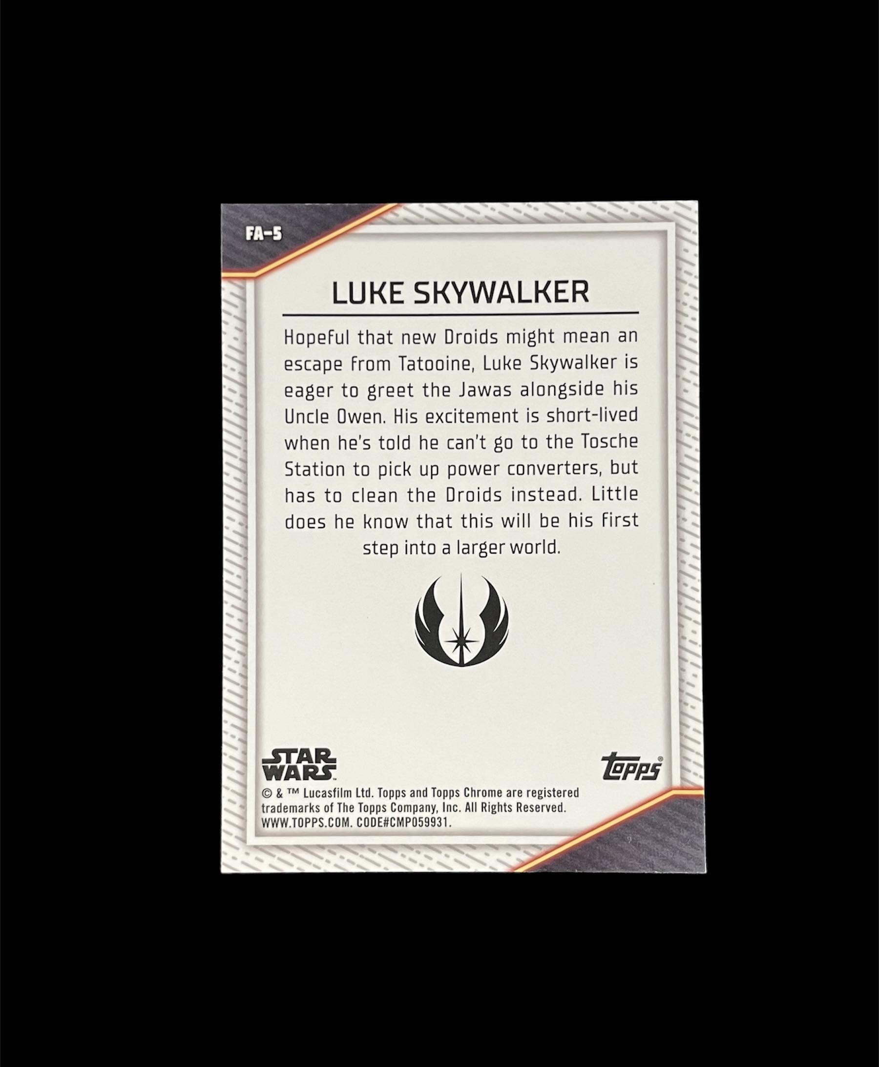 Previous Product Next Product 2023 Star Wars Chrome First Appearances Luke Skywalker FA-5 $50.00 2023 Star Wars Chrome First Appearances Luke Skywalker FA-5 quantity Add to cart Categories: Parallels, Star Wars Tags: ANH, Insert, Short Print, SP Additional information Reviews (0) Additional information Manufacturer Topps Reviews There are no reviews yet. Be the first to review “2023 Star Wars Chrome First Appearances Luke Skywalker FA-5” Cancel replyYour email address will not be published. Required fields are marked *Your rating * Rate… Perfect Good Average Not that bad Very poor Your review *Name * Email * Save my name, email, and website in this browser for the next time I comment. Related products Quick View Quick View Star Wars, SW Slabs2021 Topps Chrome Star Wars Galaxy 4 Frozen In Carbonite Wave Refractor /99 PSA 10 Han Solo $75.00 Quick View Quick View Star Wars, SW Slabs2021 Topps Chrome Star Wars Galaxy 43 The Empire On Hoth Purple Refractor /25 PSA 10 Snowtrooper $250.00 Quick View Quick View Parallels, Star Wars2021 Star Wars Chrome Galaxy 51 New Republic: Together /99 $35.00