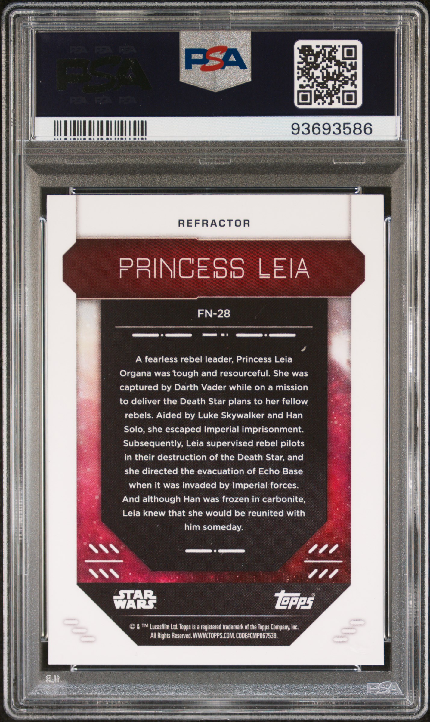 2023 Topps Finest Star Wars FN28 Princess Leia Refractor PSA 10